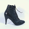 High heels, lace up front, pointy toes.