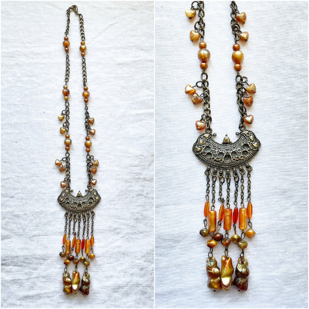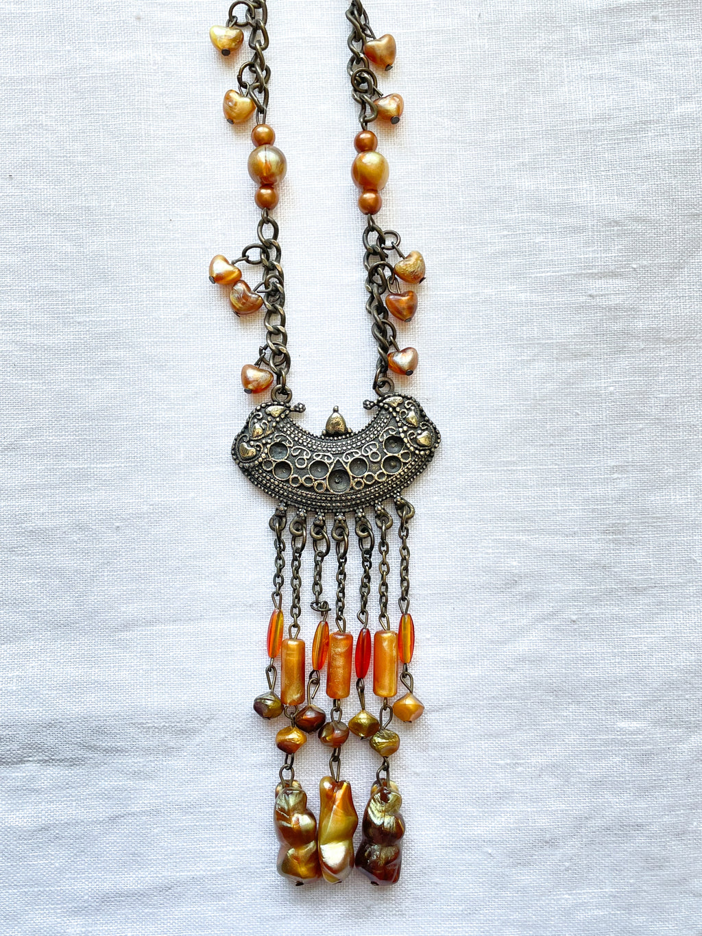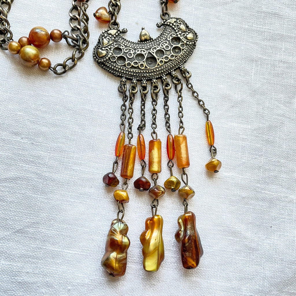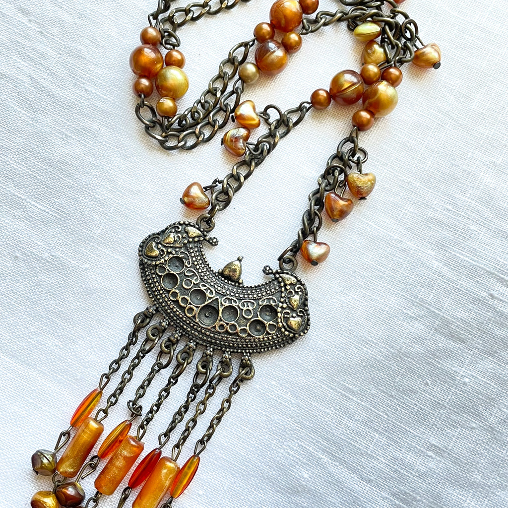 Vintage Boho Gypsy Pendant Necklace, Costume Jewelry