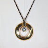 The chain is constructed with tubes linked with round fittings. The Disc pendant has a circular ball at its center.