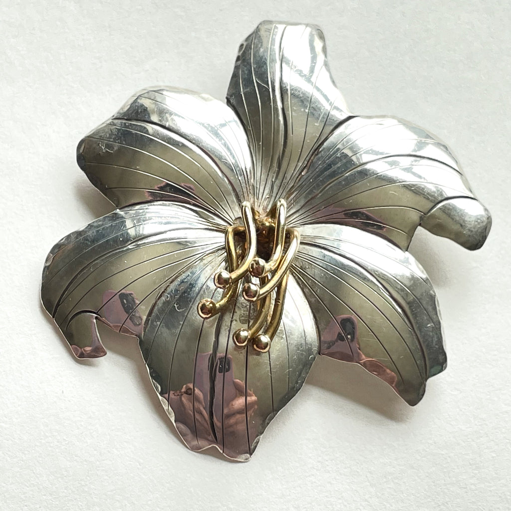 Vintage Courtney Peterson handmade flower brooch/pendant combination.