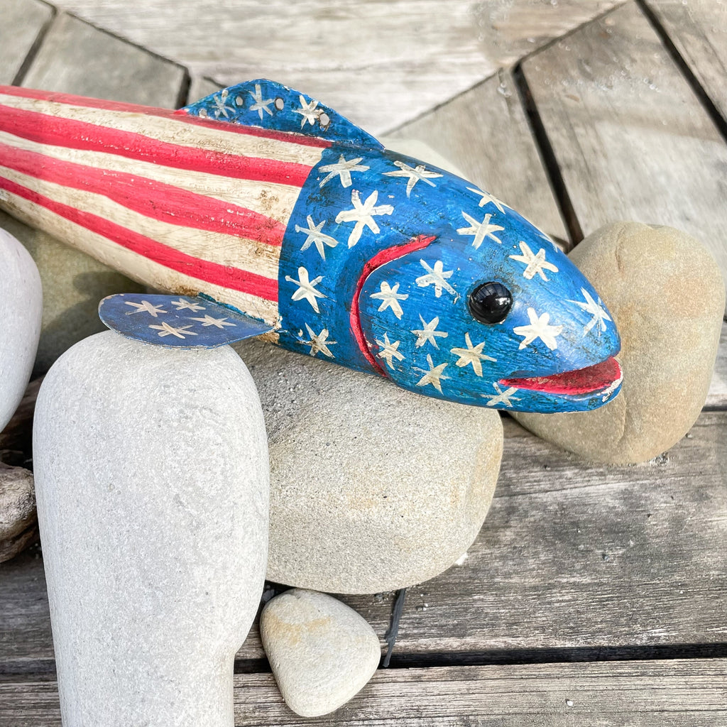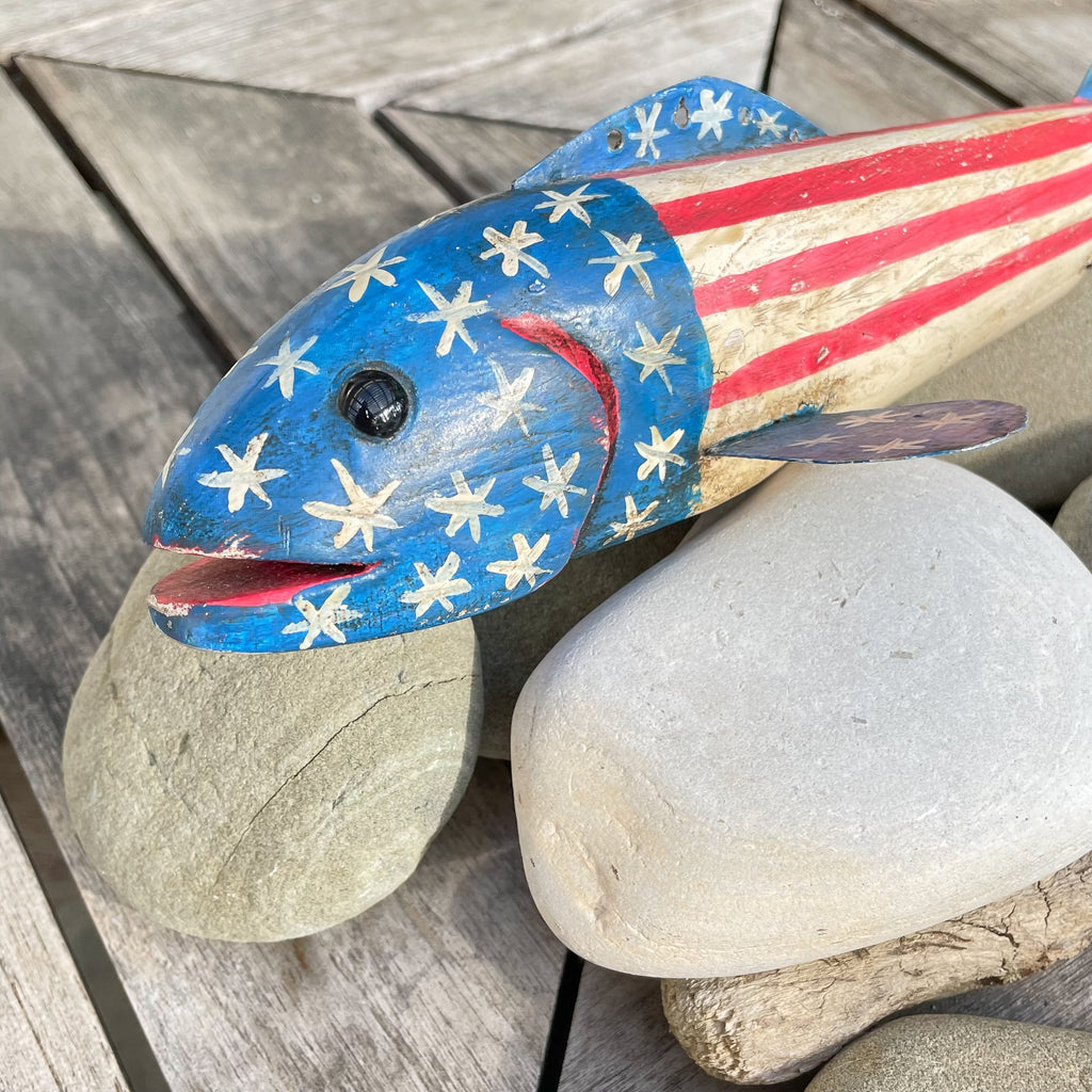 SOLD Vintage DFD Duluth Fish Decoy, Flag Fish Decoy, David Earl Perkins