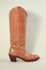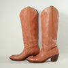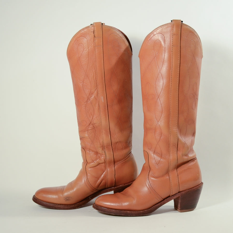 Western Style tall pull on leather boots. Topstitched in matching thread.