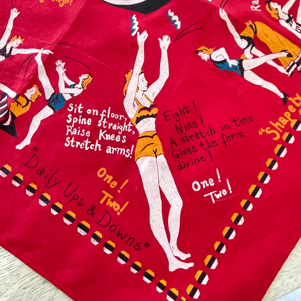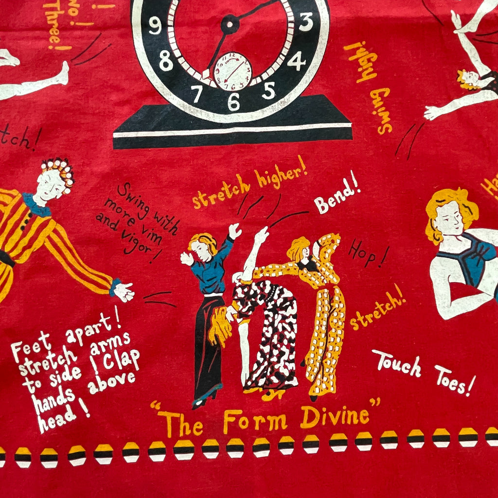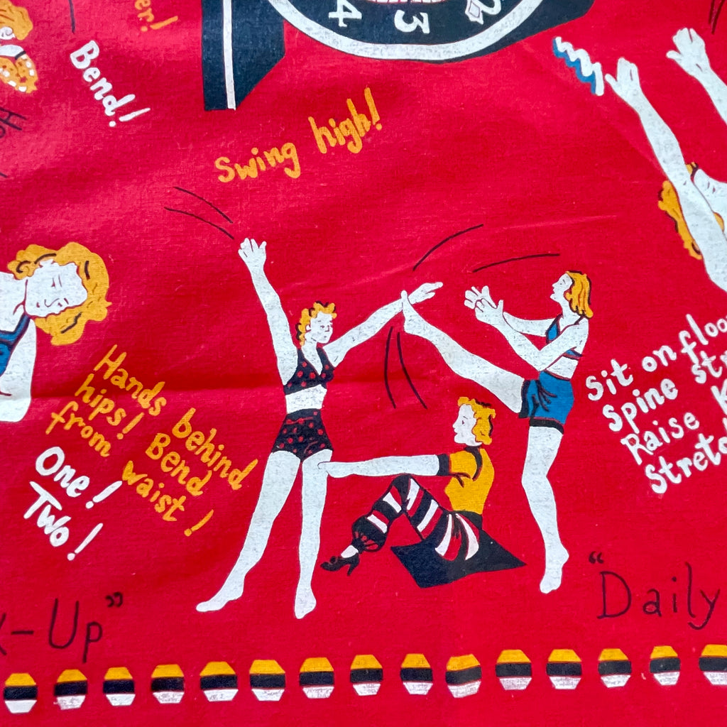 Cute novelty print with women working out and exercising. Charming images and phrases.