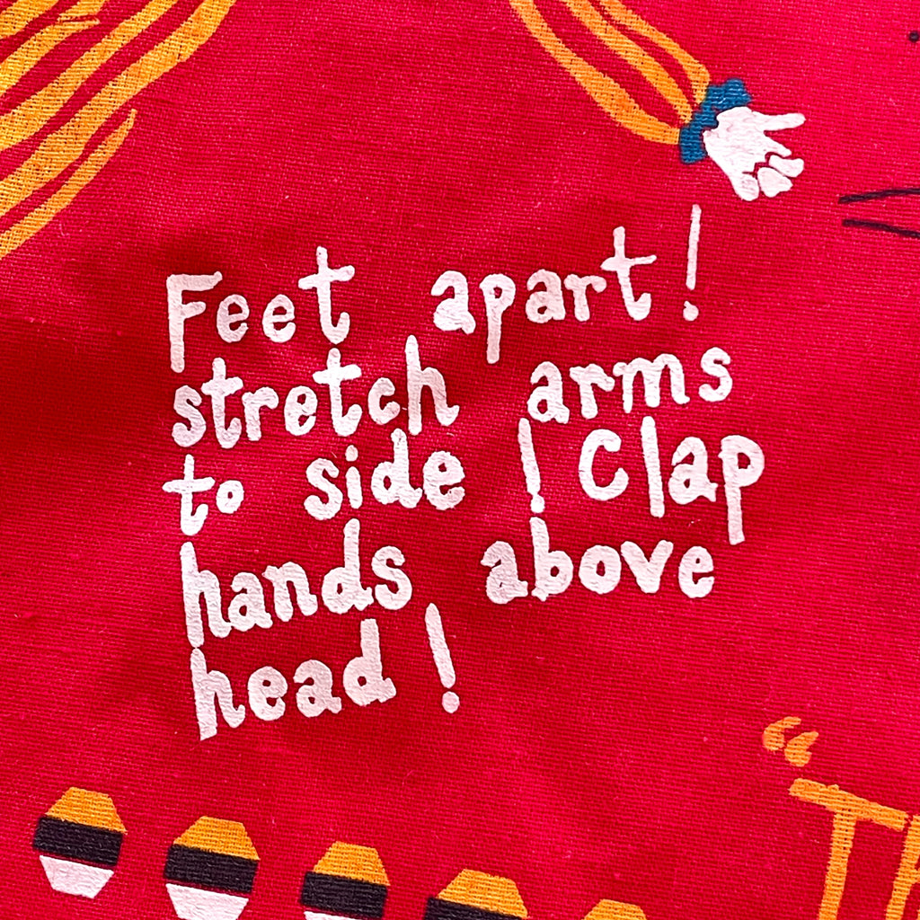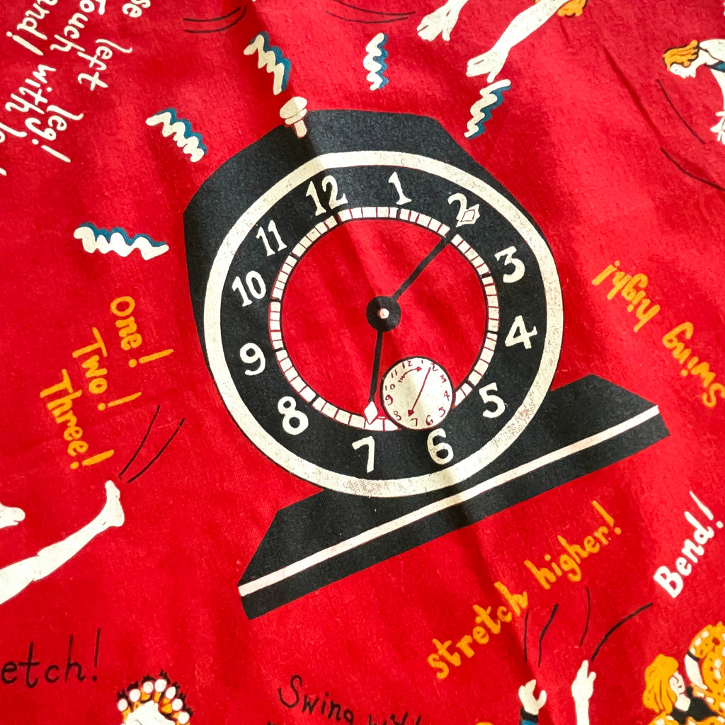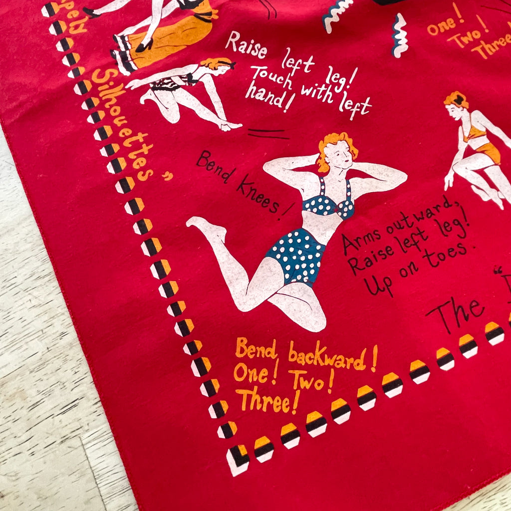 Cute novelty print with women working out and exercising. Charming images and phrases.