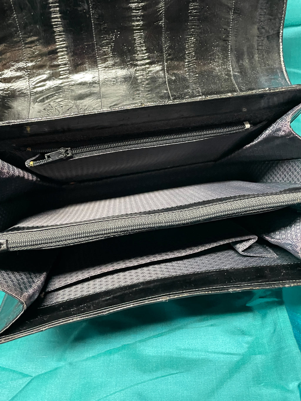 CONDITION: Excellent, we have conditioned the eel skin. We clean and condition all leather bags before shipping.