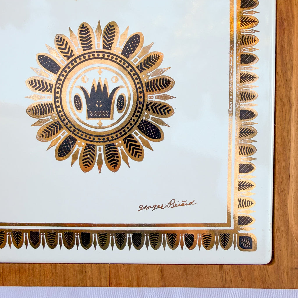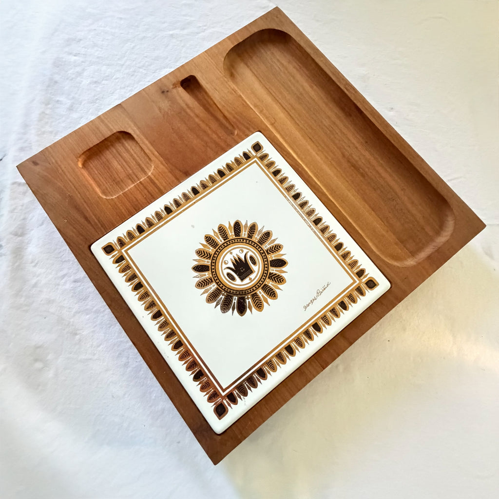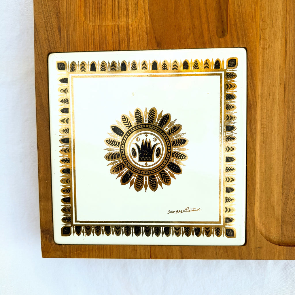 George Briard design Mid Century Wood and ceramic tile serving tray.
