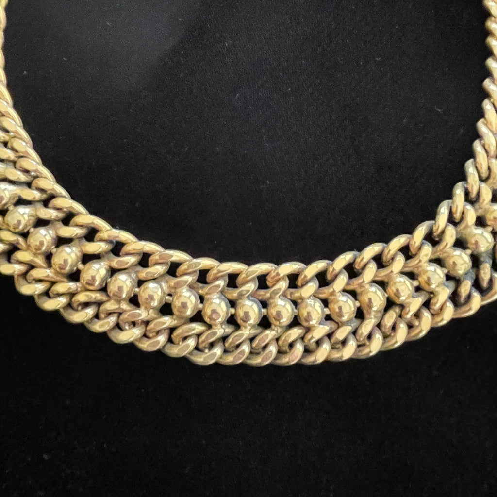 Vintage gold tone double link chain necklace with ball detail in the center.