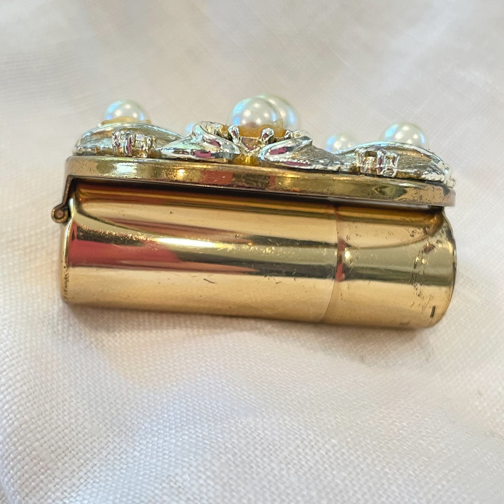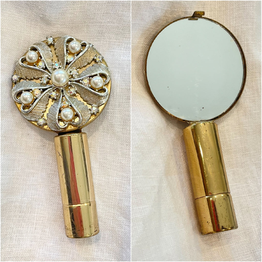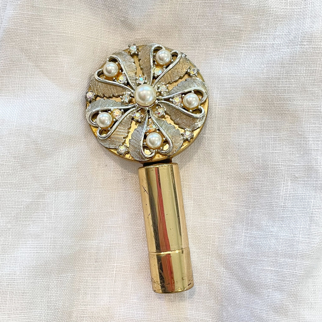 Beautiful Mid Century vintage fancy lipstick holder/mirror/compact.