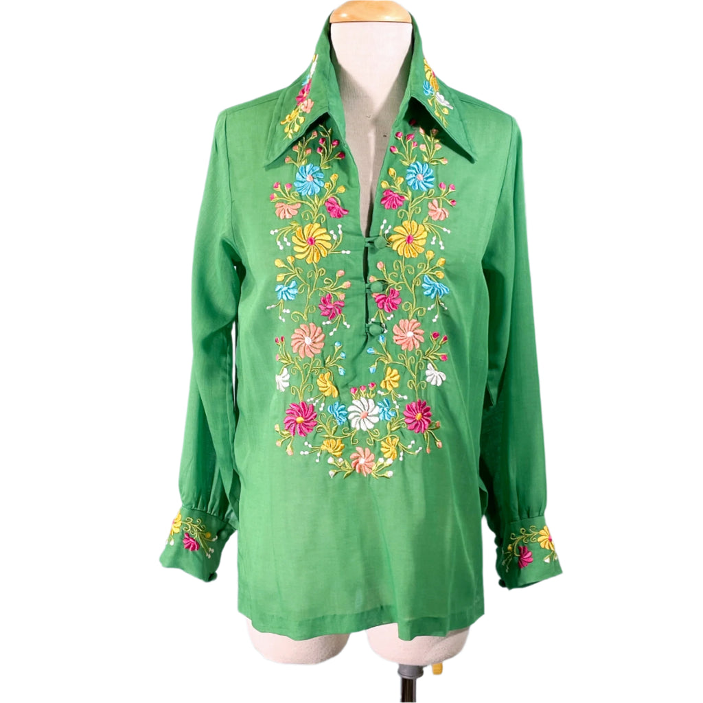 Lightweight cotton or cotton/poly blend, semi sheer.