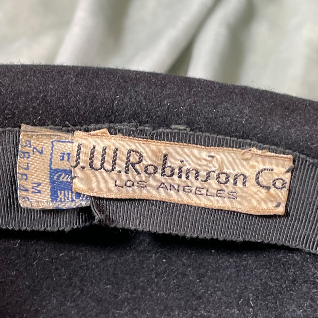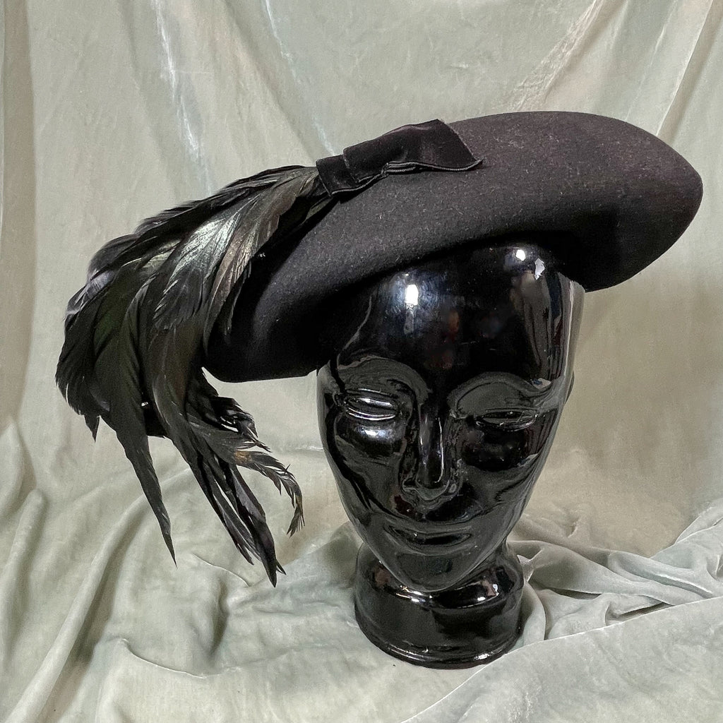 Vintage 40s Black Wool Hat w/Long Feathers, Damaged Netting Fits S