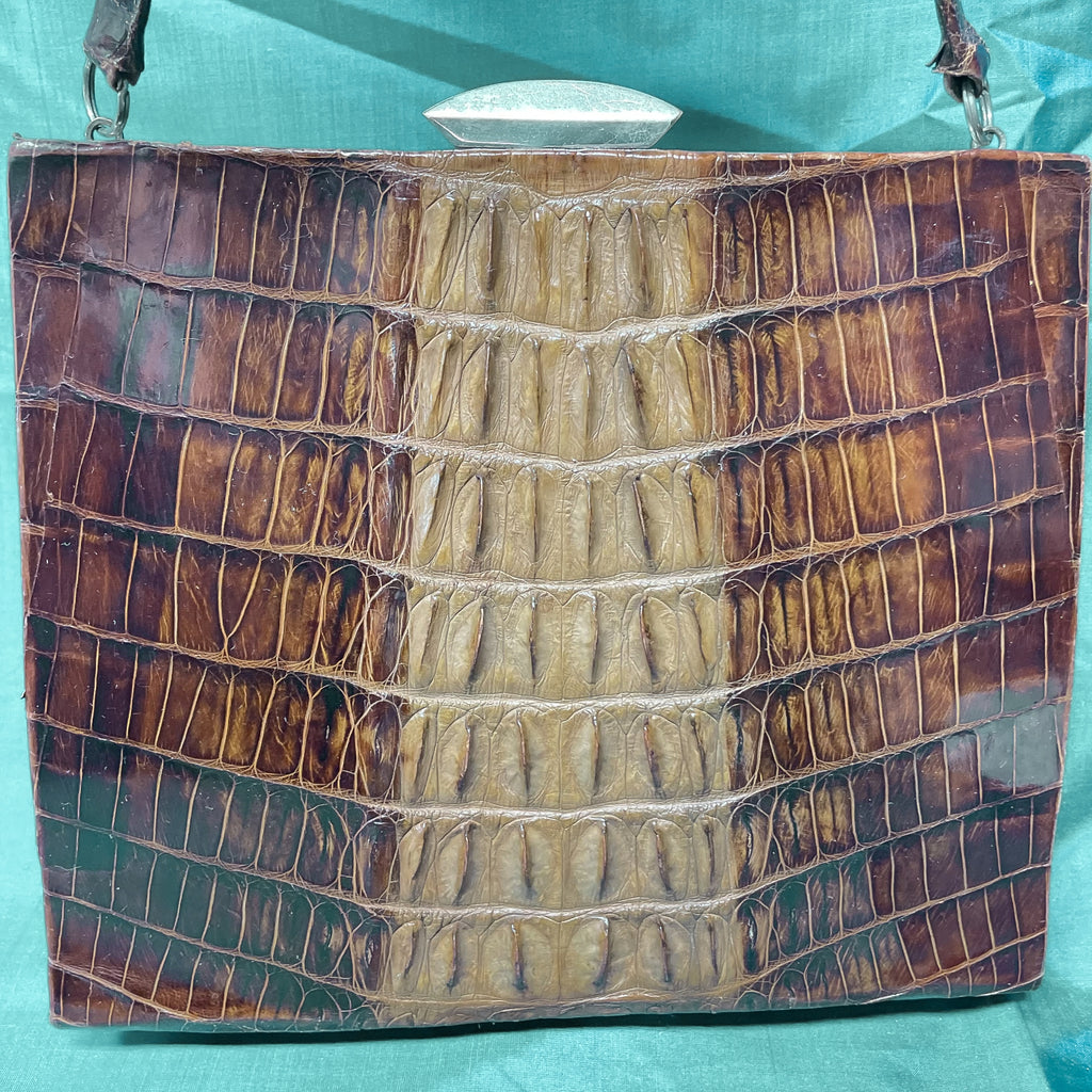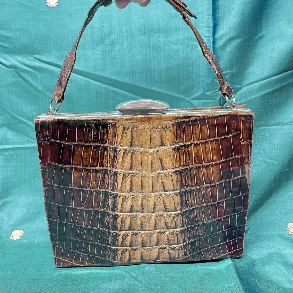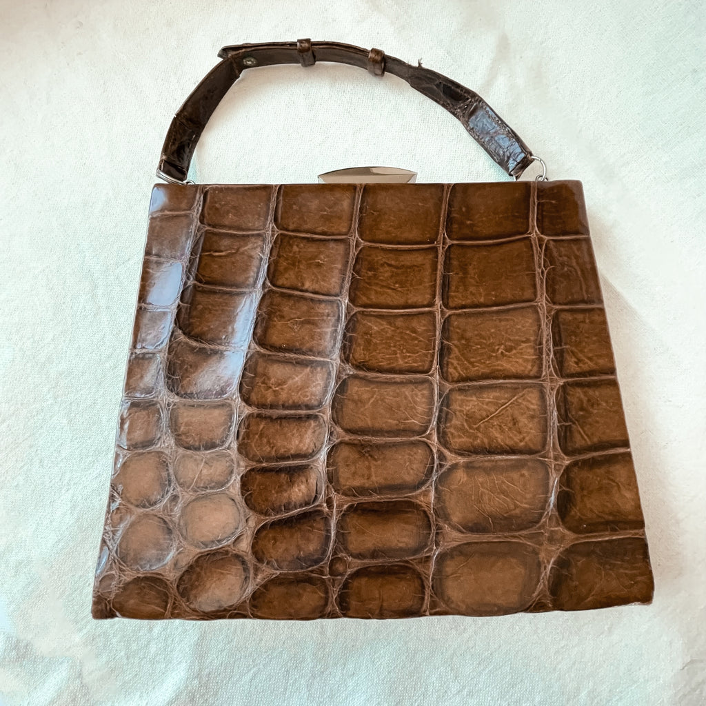 Vintage alligator handbag with top handle.
