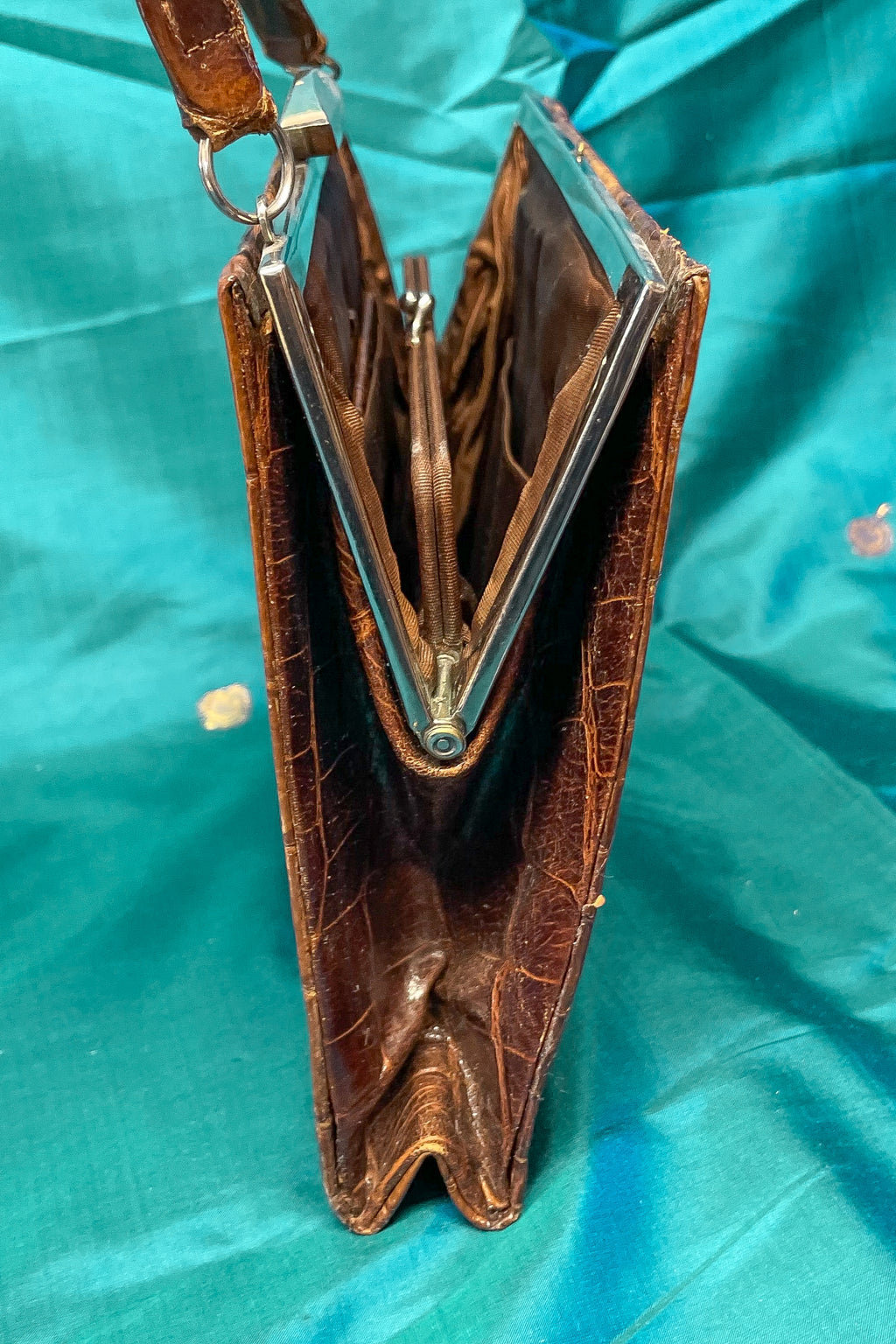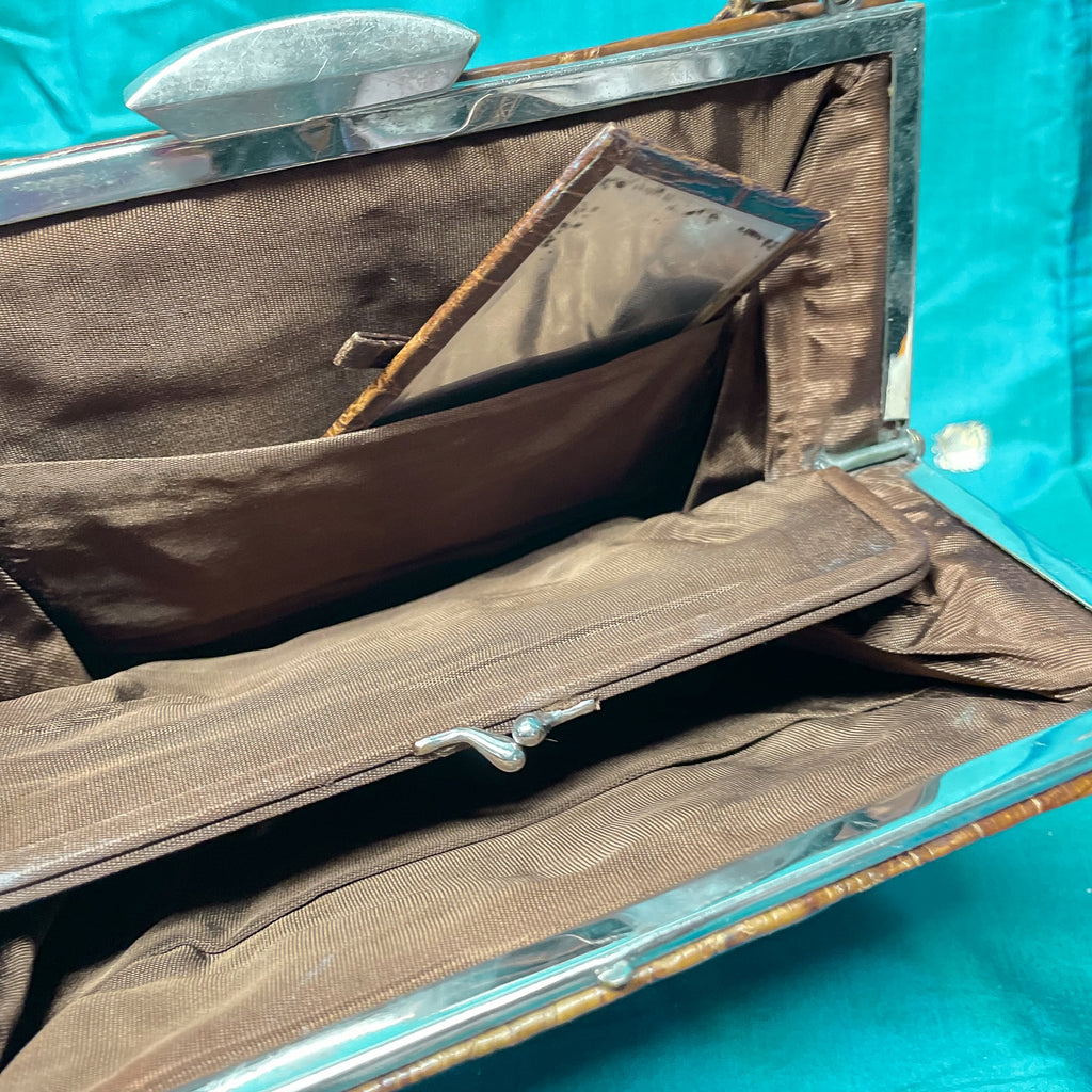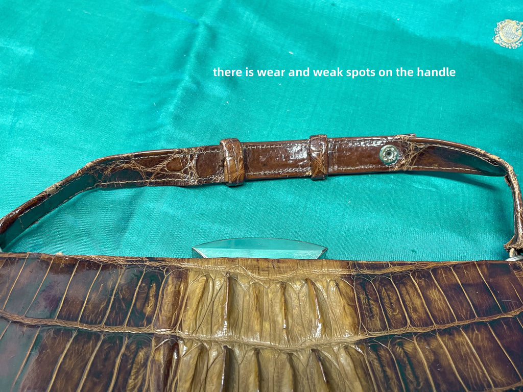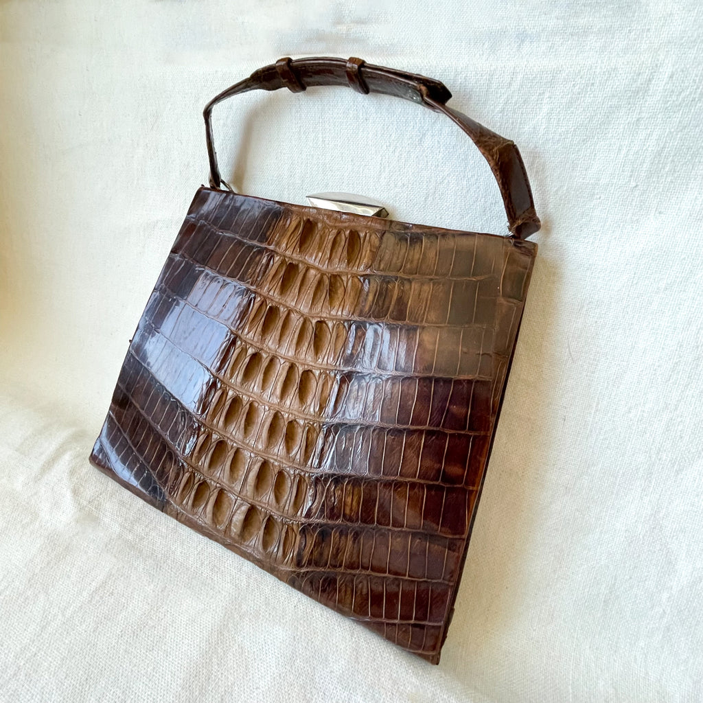 Vintage alligator handbag with top handle.