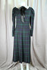 Lovely Tartan plaid Laura Ashley dress with puff sleeves, lace collar, ribbon tie at neckline.