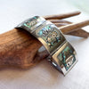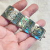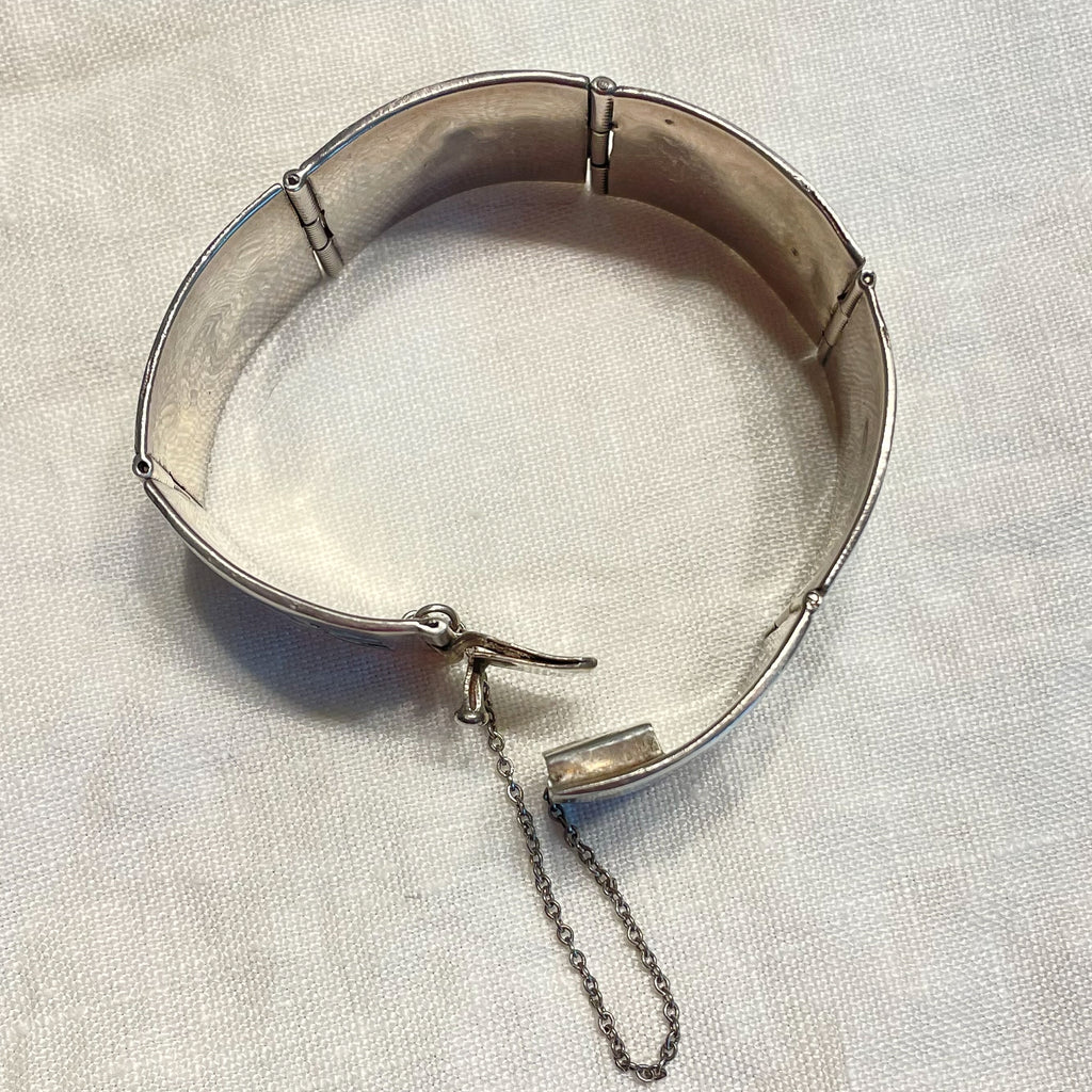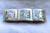 Beautiful 1950s sterling silver panel bracelet with abalone inlay.