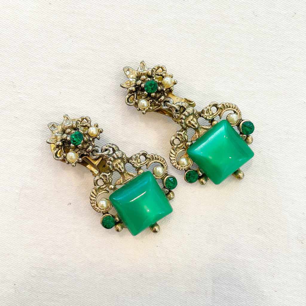 1 pair (2) dangle earrings with same details as above. Clip on earrings.