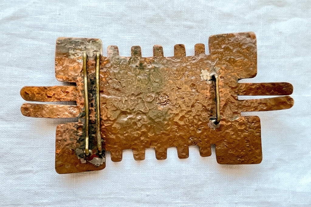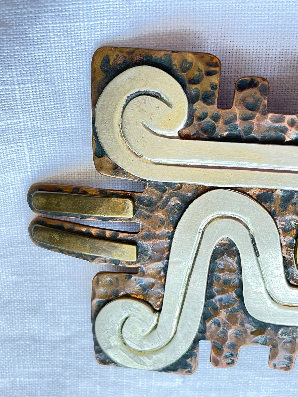 Vintage Maya Mexico Belt Buckle, Hammered Copper Mixed Metal Buckle