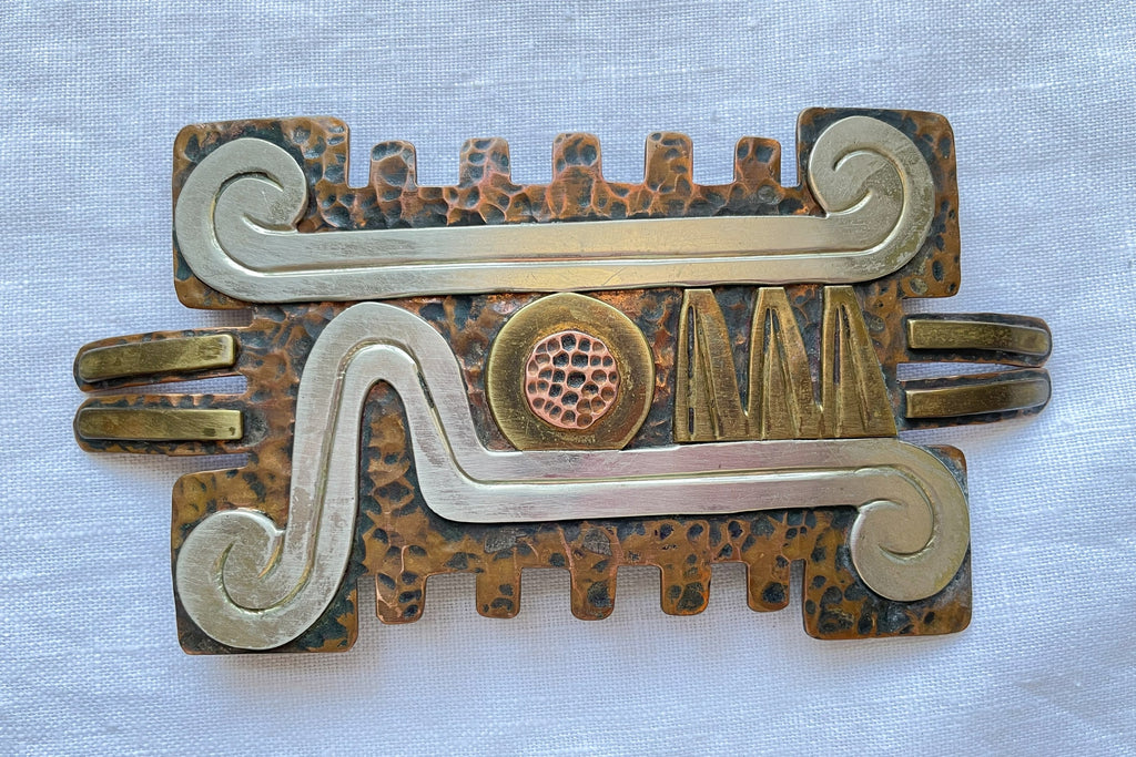 Vintage mixed metal belt buckle from Casa Maya Mexico.