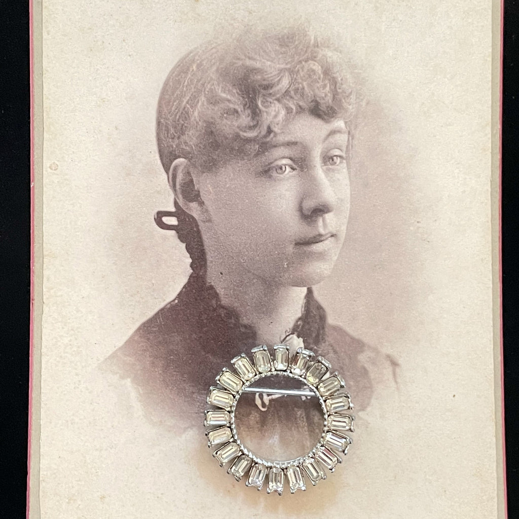 Vintage MCM Rhinestone Circle Brooch