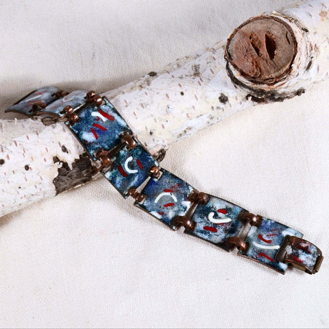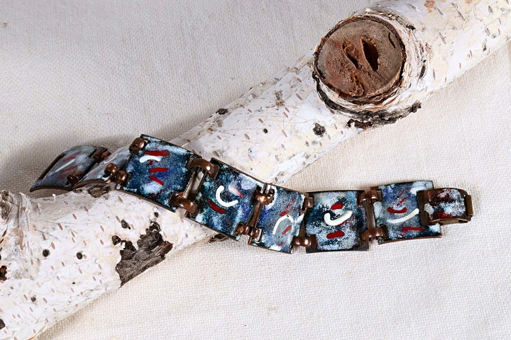 SOLD Vintage Mid Century Copper Enamel Modernist Bracelet