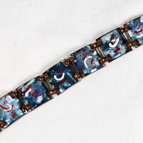 Mid Century painted enamel on a copper bracelet.