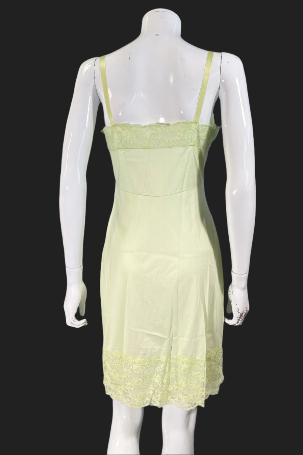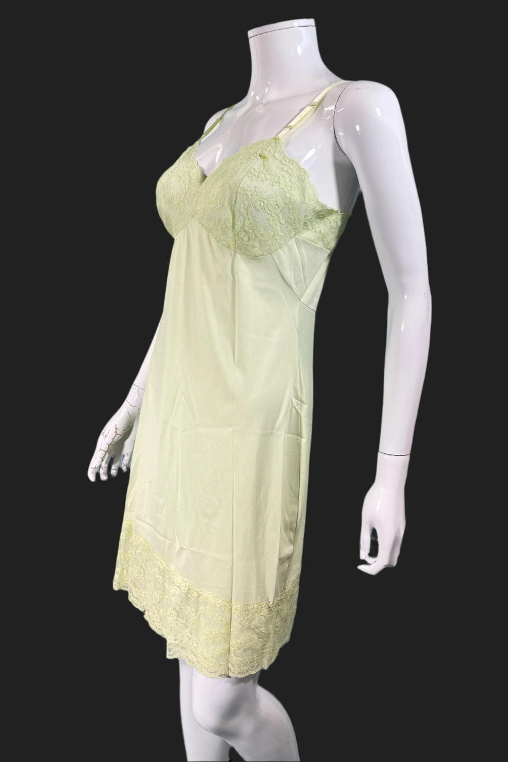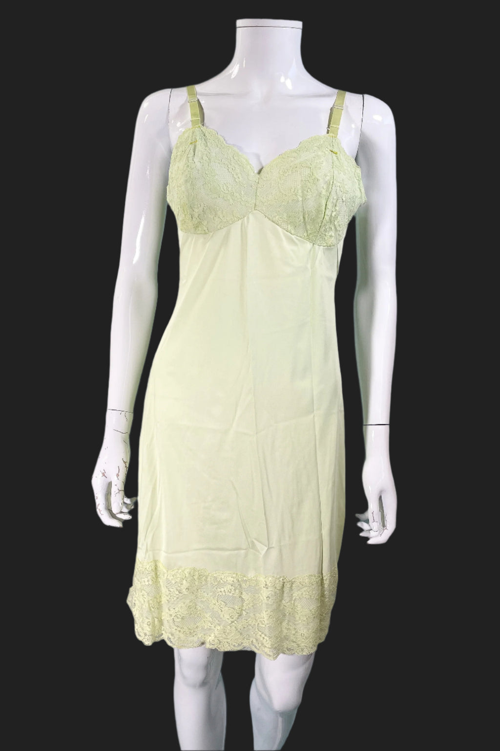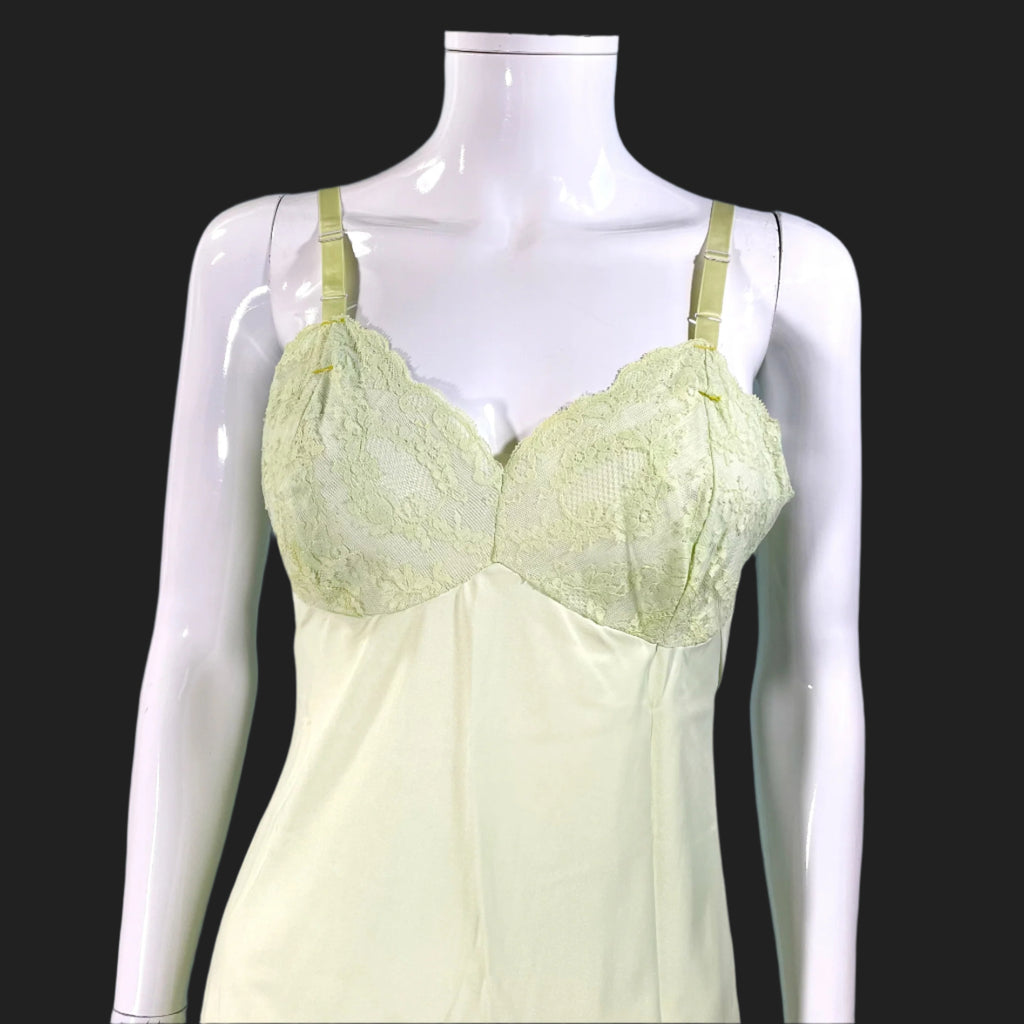 Vintage full slip with lace panels on the bust and accent lace at the hemline.