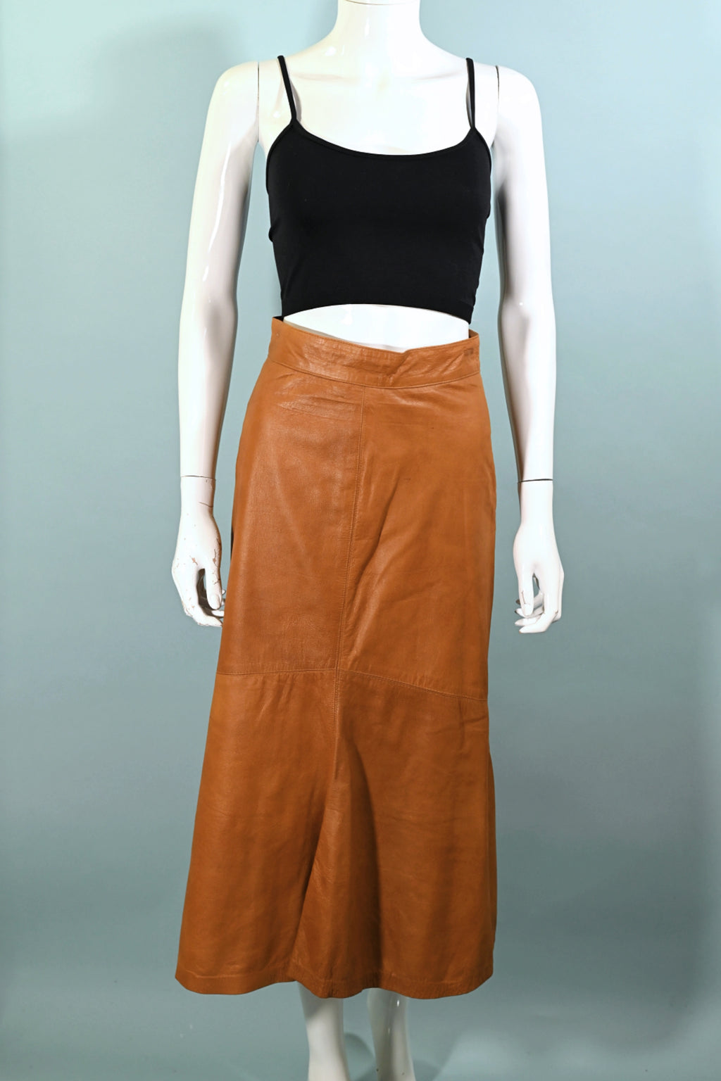 SOLD Vintage Soft Leather Skirt, Flare Leather Skirt S