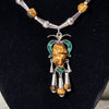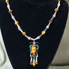 Lovely necklace with pendant featuring tassels mad form silver & beads. Box closure.
