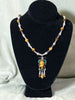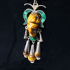 Vintage Sterling Silver Pendant Necklace, 925 Silver Tiger Eye Malachite Hand Carved Stone Mayan/Aztec Face Taxco Mexico
