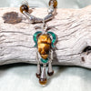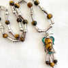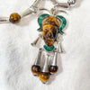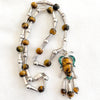 Handmade necklace, silver and tiger's eye carved face & beads, malachite inlay details.