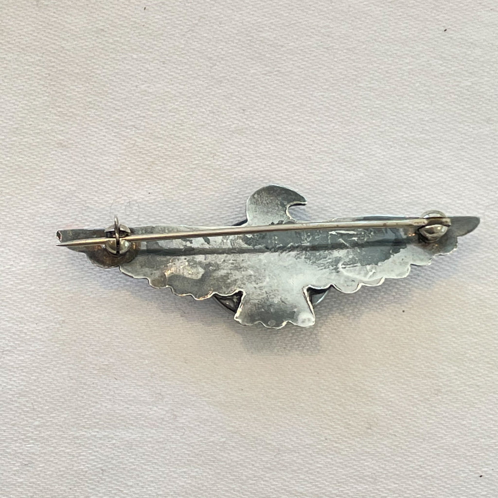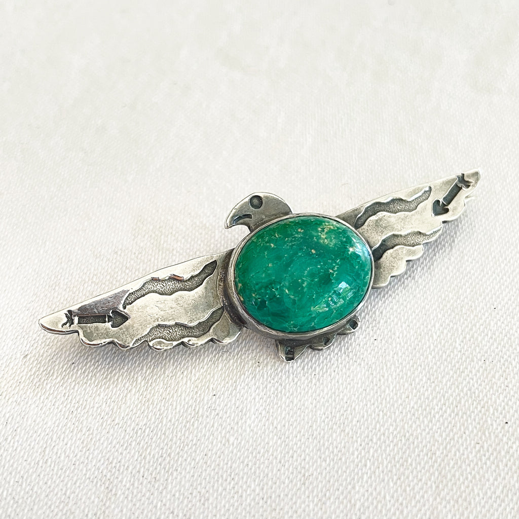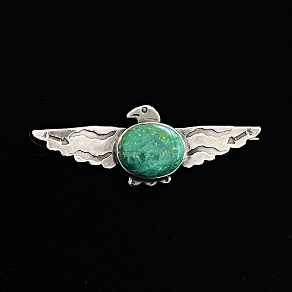 Vintage Sterling Silver Turquoise Thunderbird Brooch, Fred Harvey Era Pin 2 1/4" L