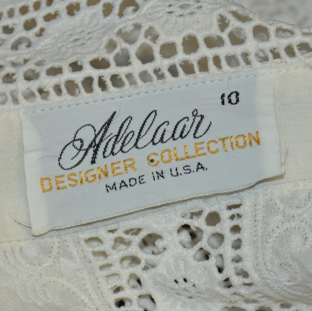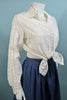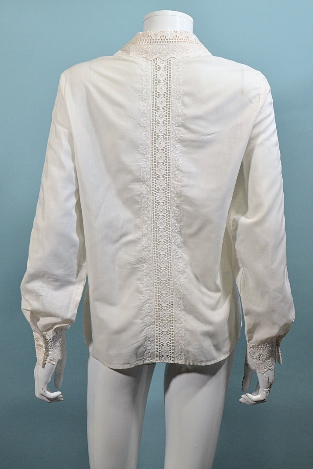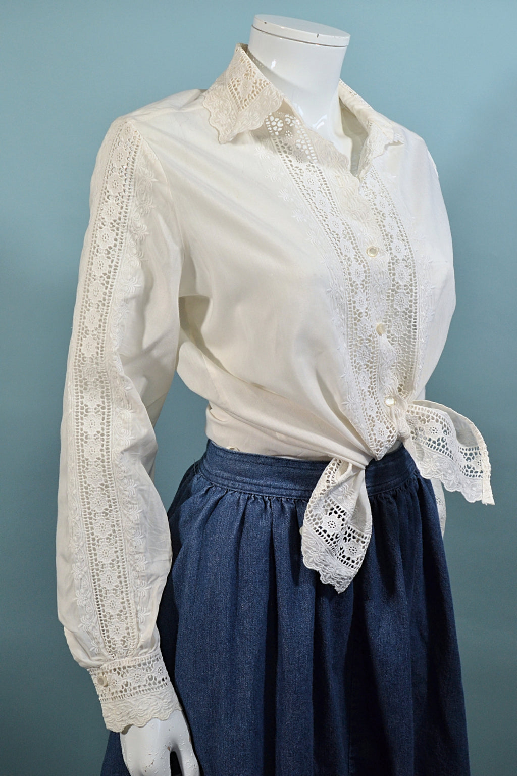 Vintage white cotton blouse with cut-out lace and embroidered details.