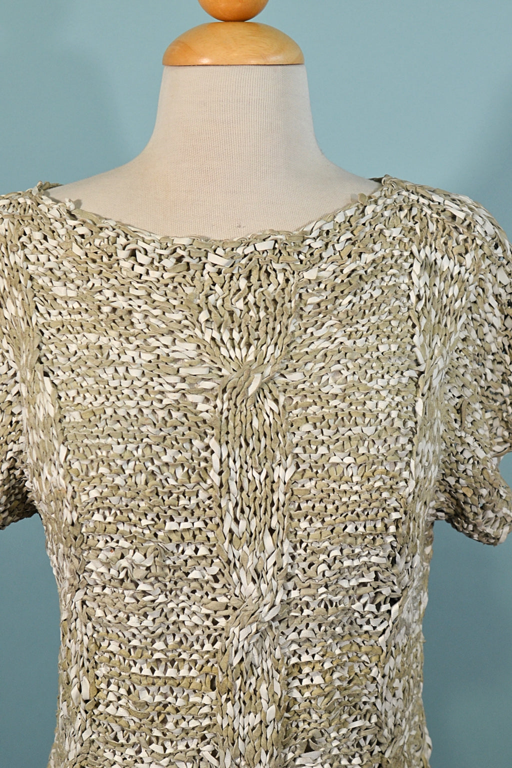 SOLD Vintage Woven Leather Pullover Top, Cable Knit Leather Top S/M