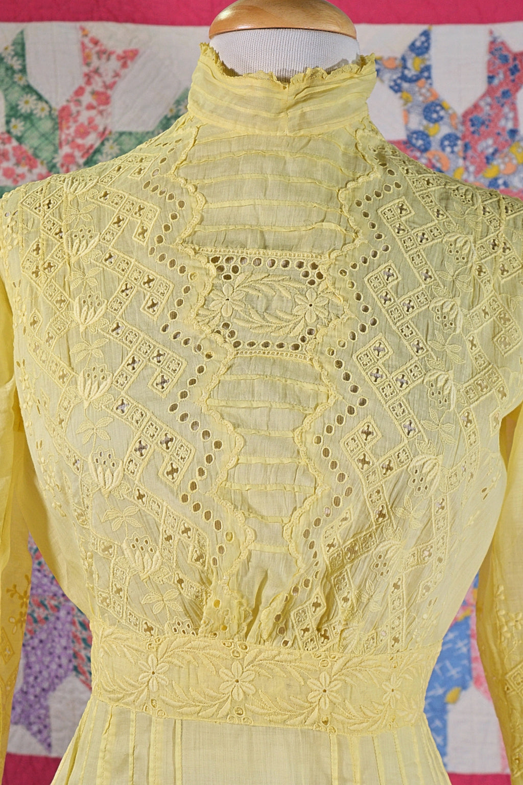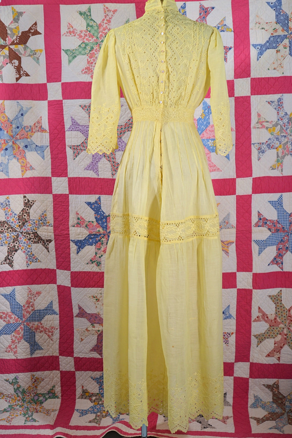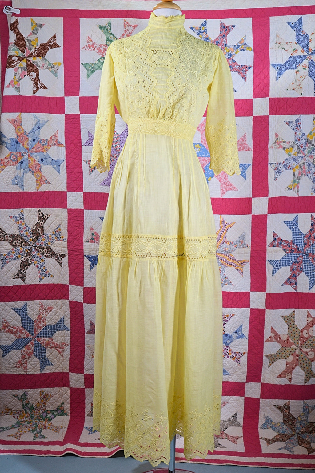 SOLD Yellow Antique Edwardian Eyelet Lace Maxi Dress
